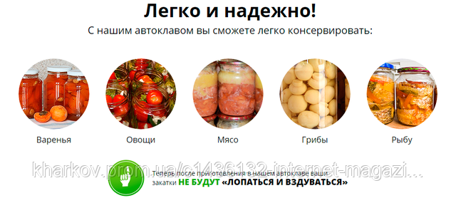 Ви сумніваєтеся, де купити автоклав для домашнього консервування? Або не знаєте, який побутовий автоклав кращий для овочів чи м'яса? Ви потрапили за адресою. Вас здивує демократична ціна. Наші менеджери допоможуть визначитися з вибором товару, дадуть відповідь на ваші запитання. Доставка оперативно здійснюється в зручний для вас час і місце.